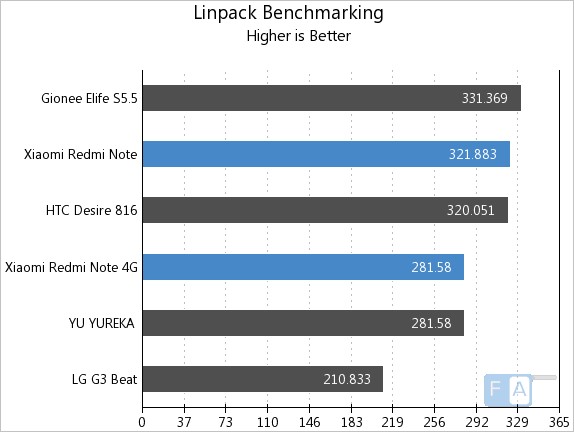 We up the ante with the Linpack test, which measures the multi-threaded oriented benchmarking of the phablet. Again, the original Redmi Note stood out.